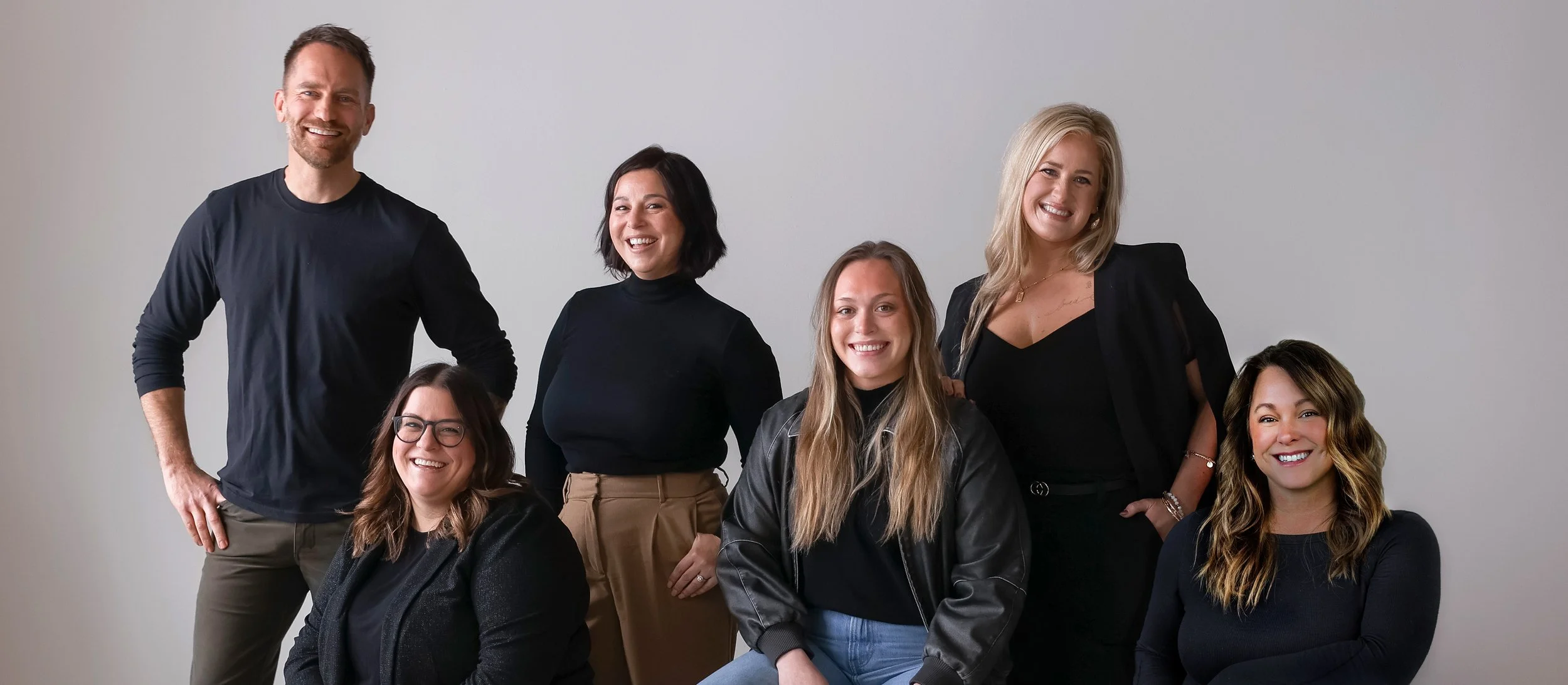 From Left: Joe Wiegele (Marketing), Alyssa Nicholson (Operations), Melissa Wiegele (Lead), Aliyah Albrecht (Buyers Agent), Jennifer Warnock (Social Media), Alison Thomford (Buyers/Sellers Agent)
